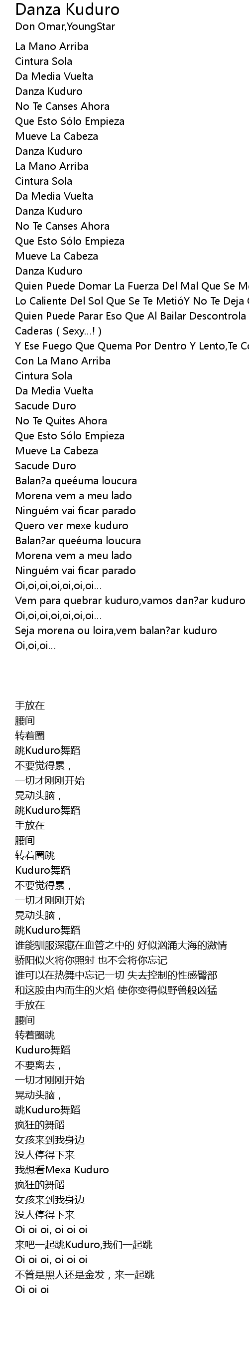 | [01:31.56] | Vem para quebrar kuduro,vamos dan?ar kuduro |
