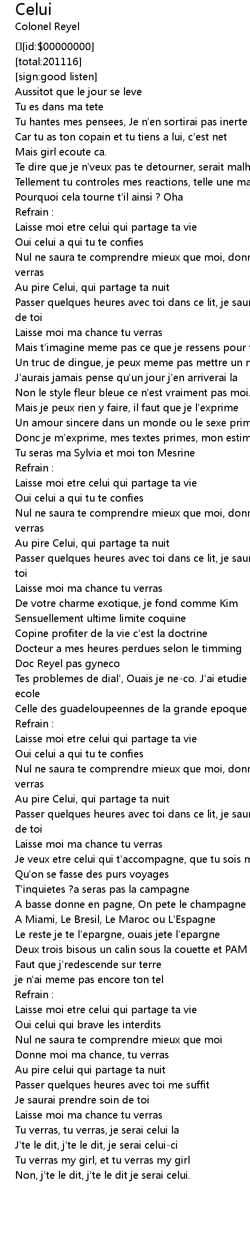 | [02:47.300] | Au pire celui qui partage ta nuit |