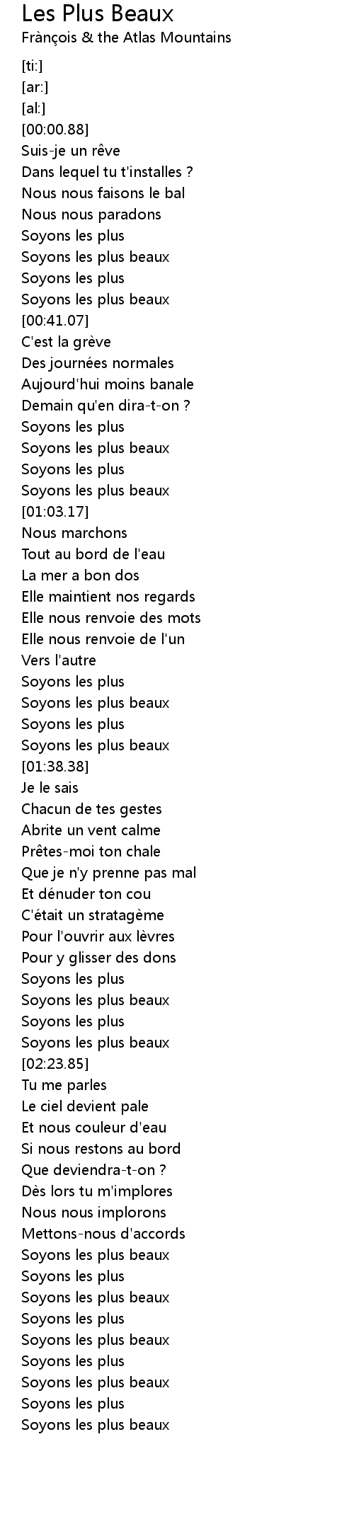 | [01:32.58] | Soyons les plus beaux |