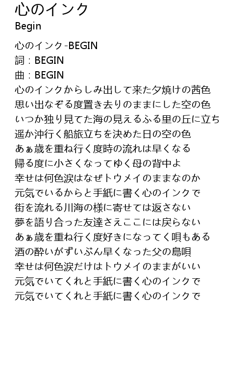 | [00:12.900] | 詞:BEGIN |