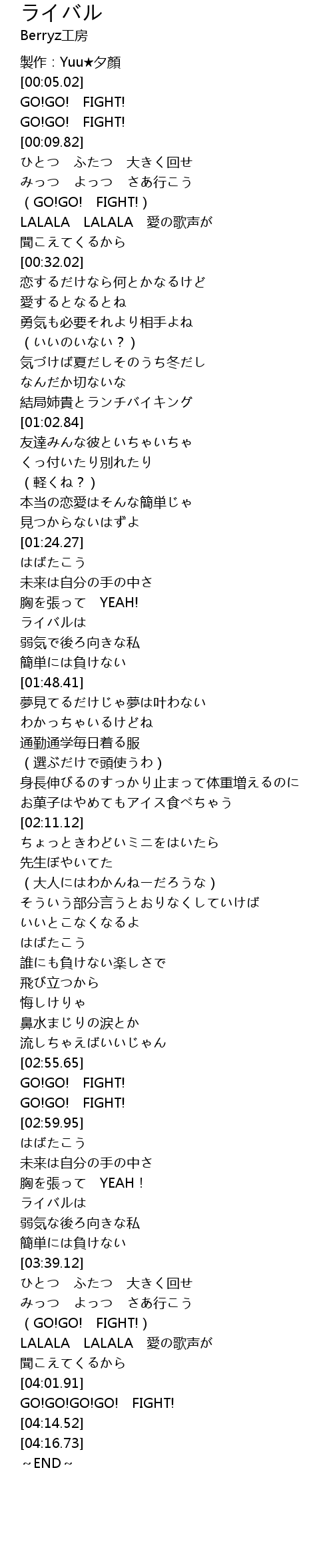 | [04:12.51] | GO! GO! GO! GO! FIGHT! |