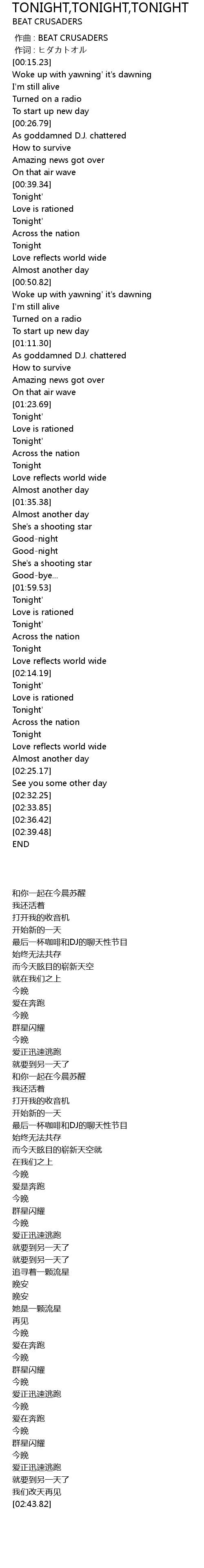 | [00:00.00] | zuo qu : BEAT CRUSADERS |