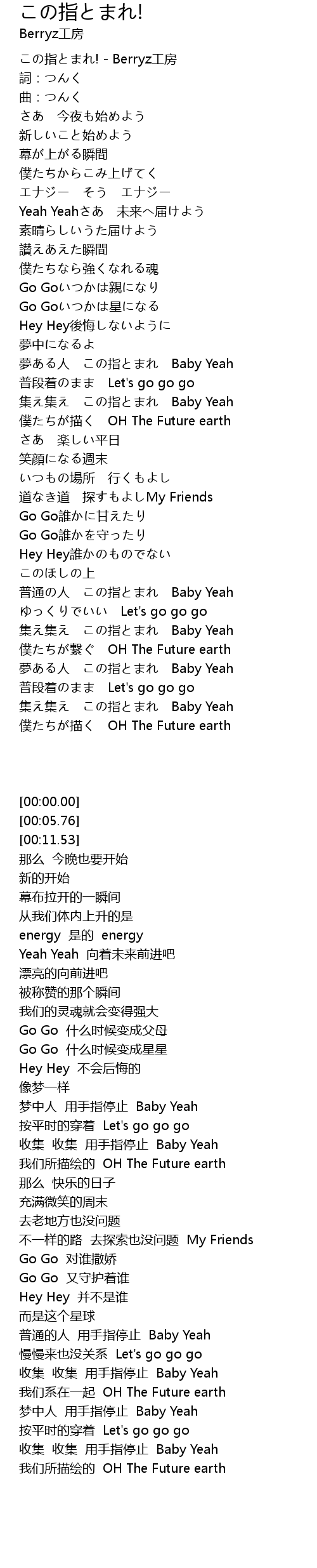 | [03:37.58] | 夢ある人 この指とまれ Baby Yeah |