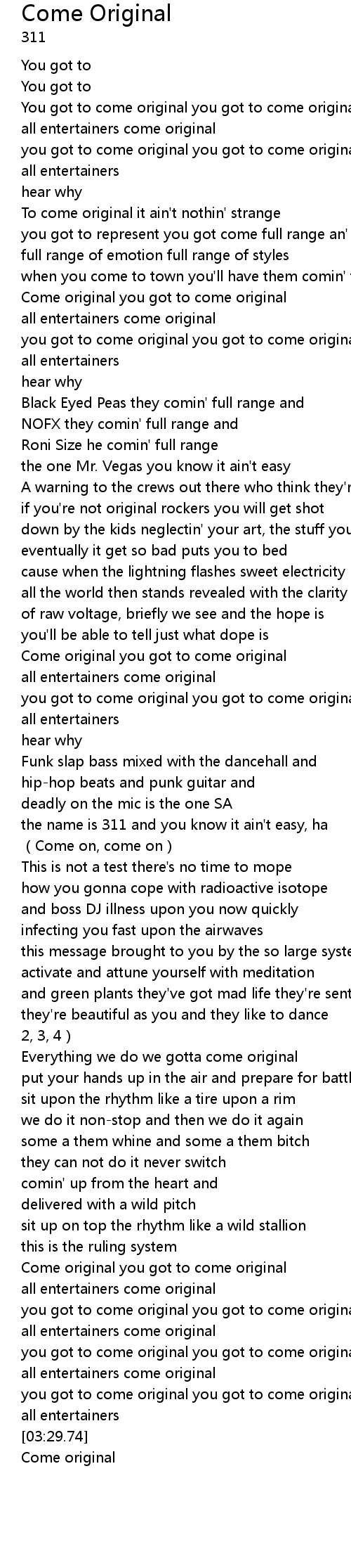 | [01:50.75] | the name is 311 and you know it ain' t easy, ha |