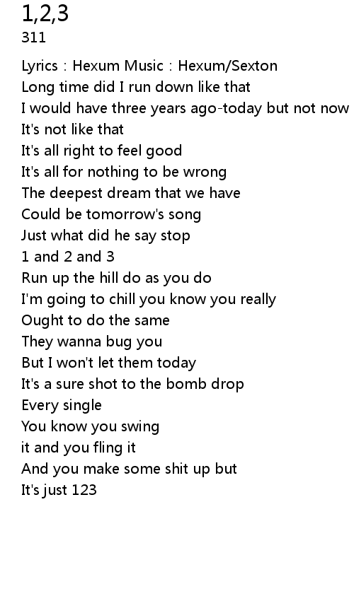 | Song | 1,2,3 |