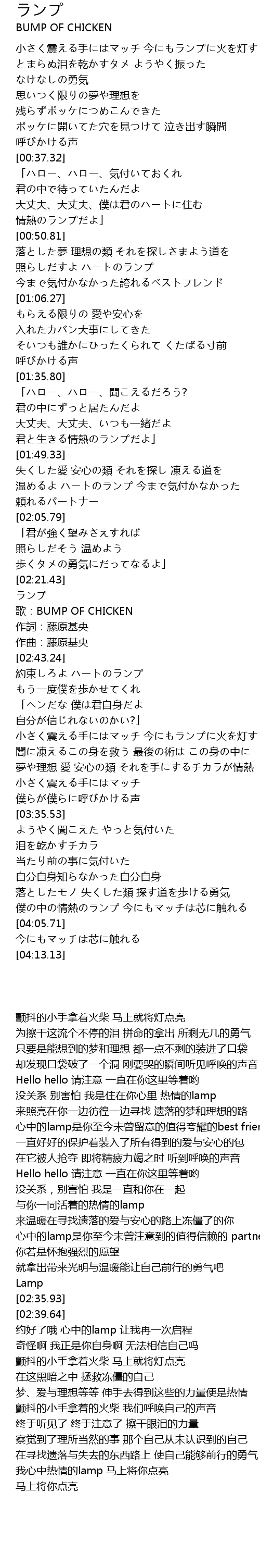| [02:35.93] | 歌:BUMP OF CHICKEN |