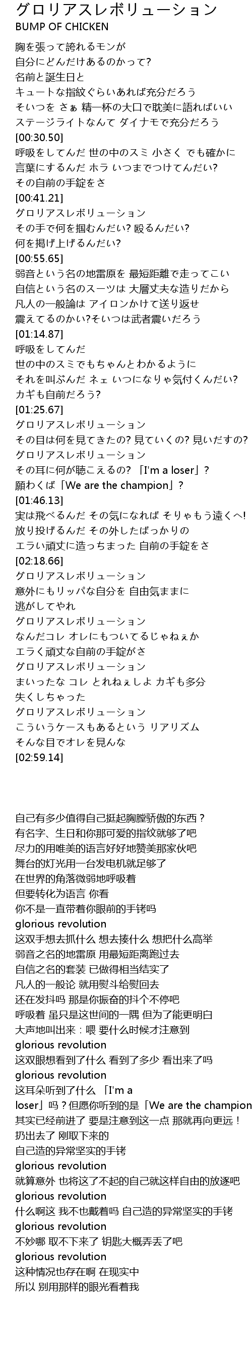 | [01:40.43] | ěr hé tīng? I' m a loser? yuàn We are the champion? |