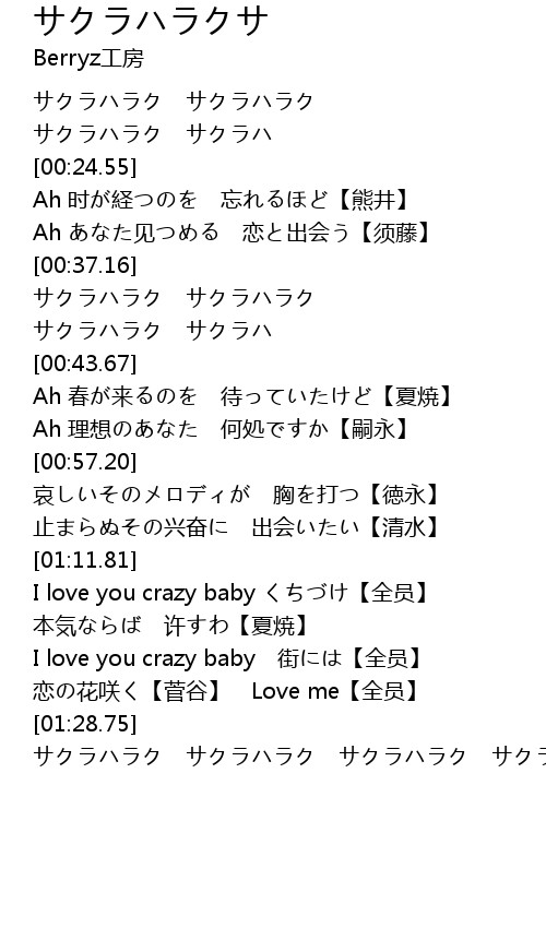 | [01:31.45] | サクラハラク サクラハラク サクラハラク サクラハ【嗣永】 |