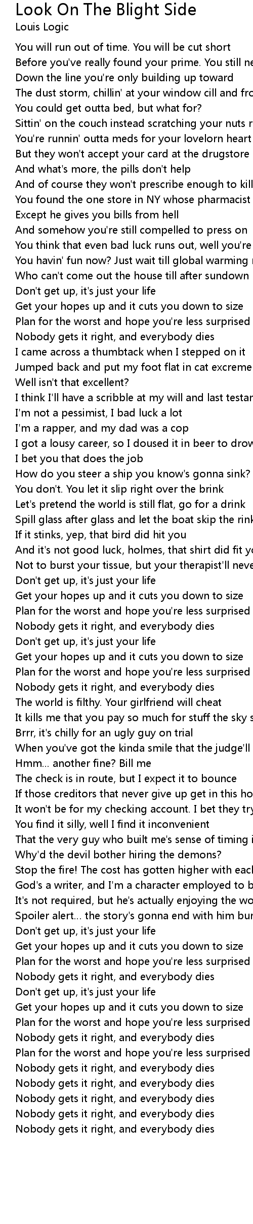 | You think that even bad luck runs out, well you' re dead wrong | |
