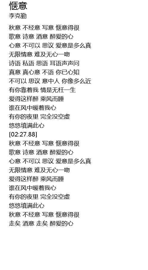 | [00:22.87] | 秋意 不经意 写意 惬意得很 |