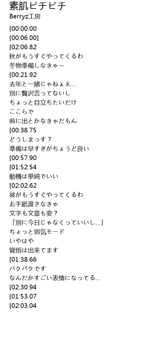 | [01:03.35][00:00.00] | 素肌ピチピチ |