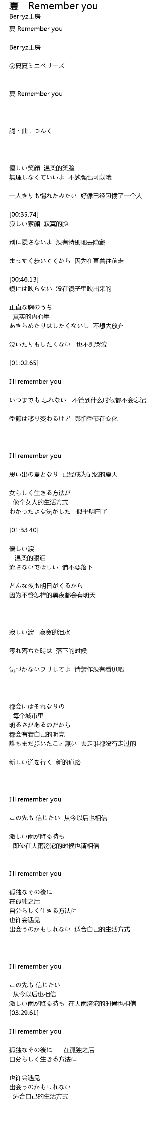 | [01:17.48] | 思い出の夏となり 已经成为记忆的夏天 |