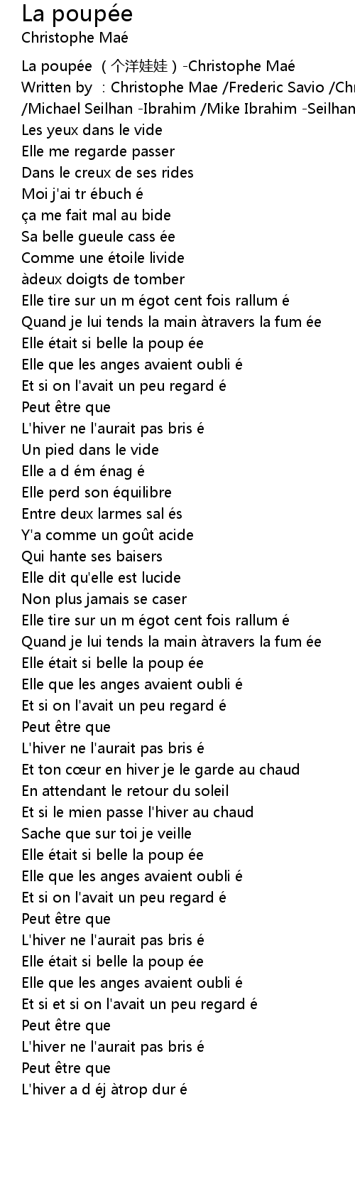 | [00:00.00] | La poupée (个洋娃娃)-Christophe Maé |