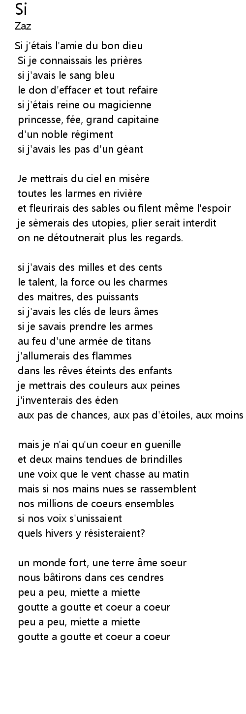 | Si j'é tais l' amie du bon dieu | |
