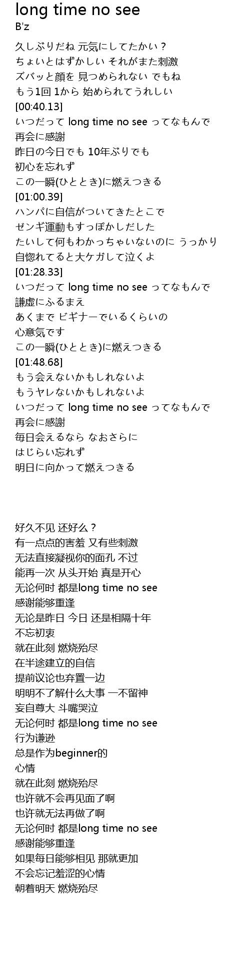 | [00:40.89] | いつだって long time no see ってなもんで |