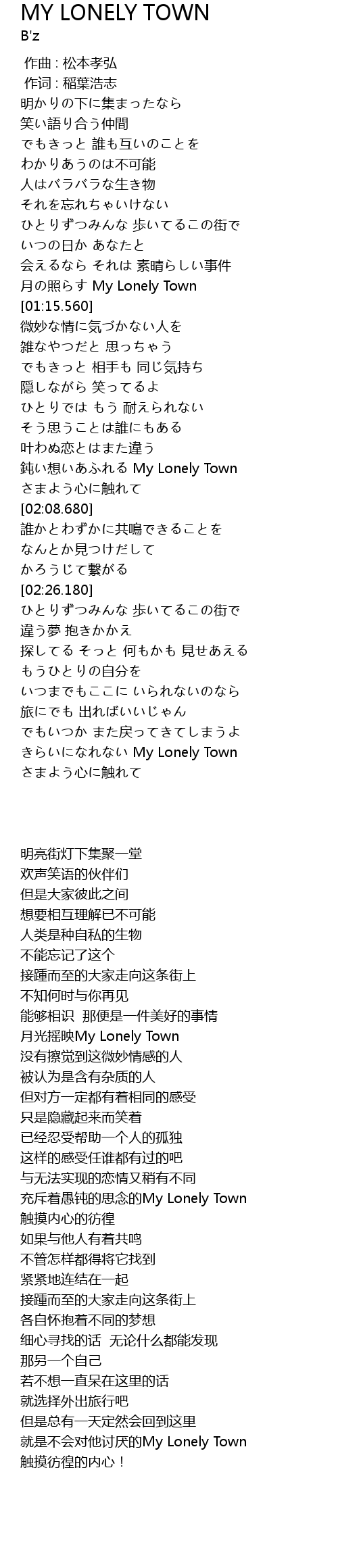 | [01:58.500] | 鈍い想いあふれる My Lonely Town |