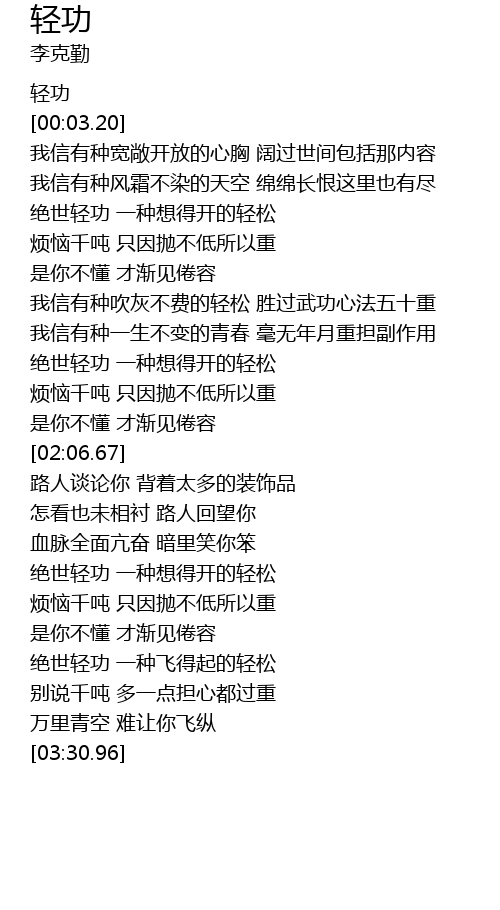| [01:39.57] | 绝世轻功 一种想得开的轻松 |