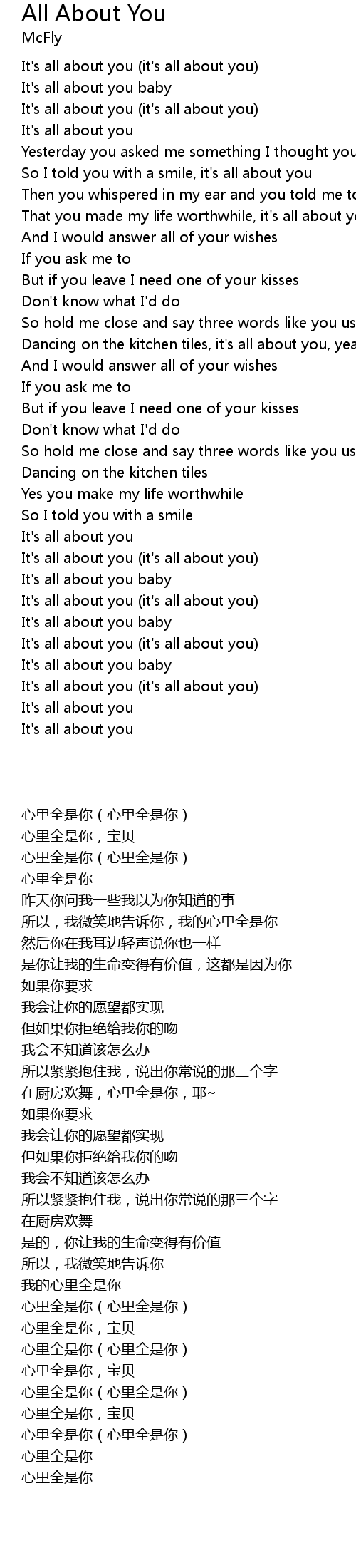 So I told you with a smile, it's all about you |