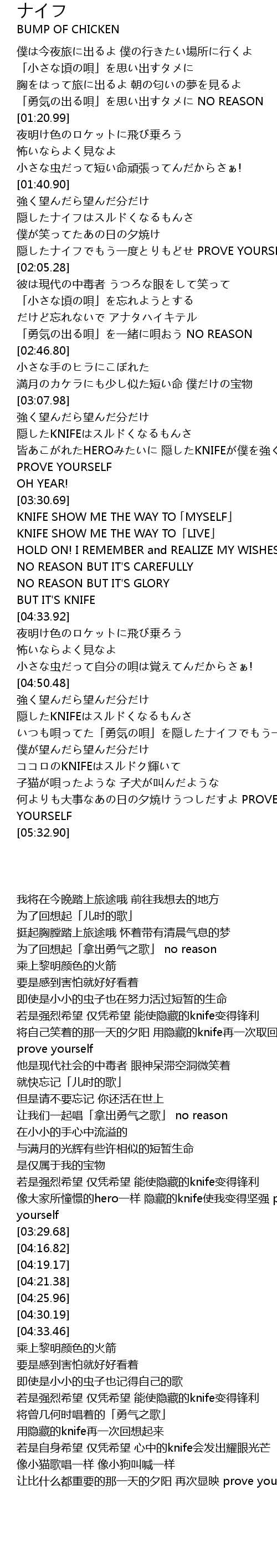 | [04:19.17] | KNIFE SHOW ME THE WAY TO LIVE |