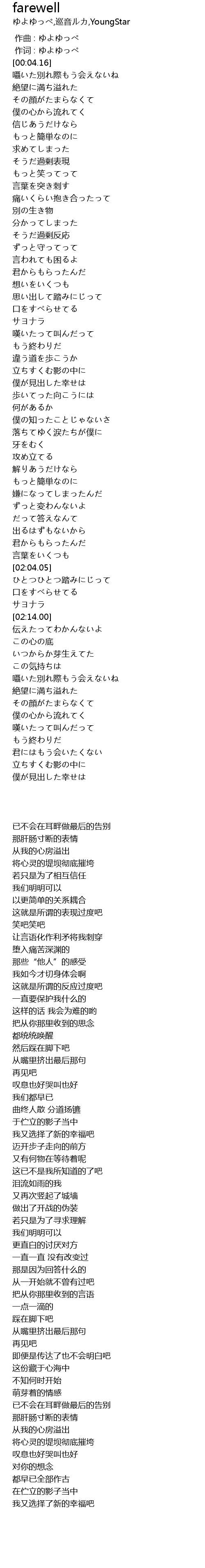 | [00:01.00] | 作词 : ゆよゆっぺ |