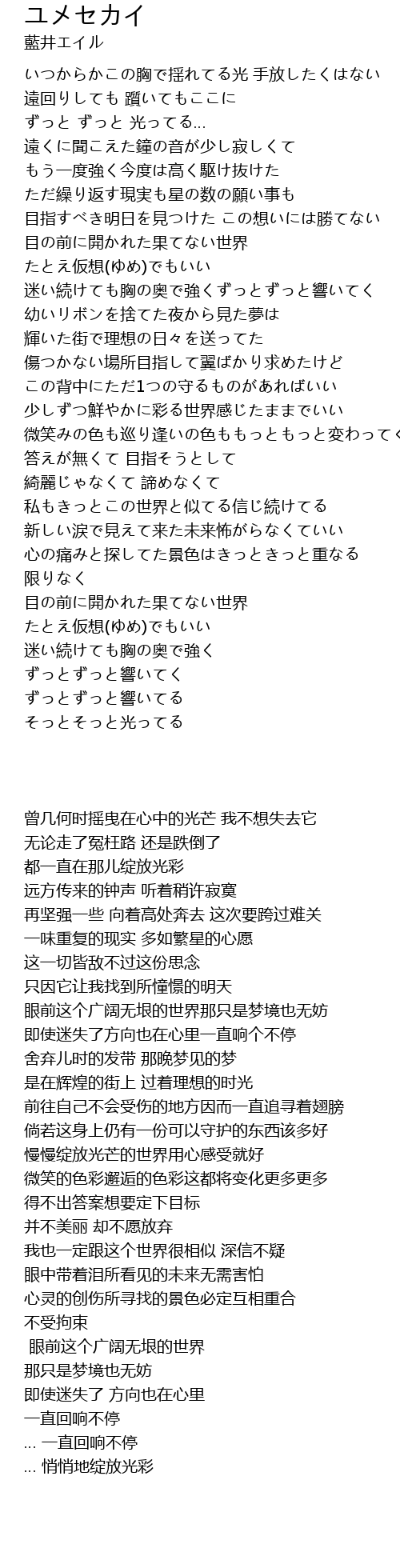 | [03:16] | 私もきっとこの世界と似てる信じ続けてる |