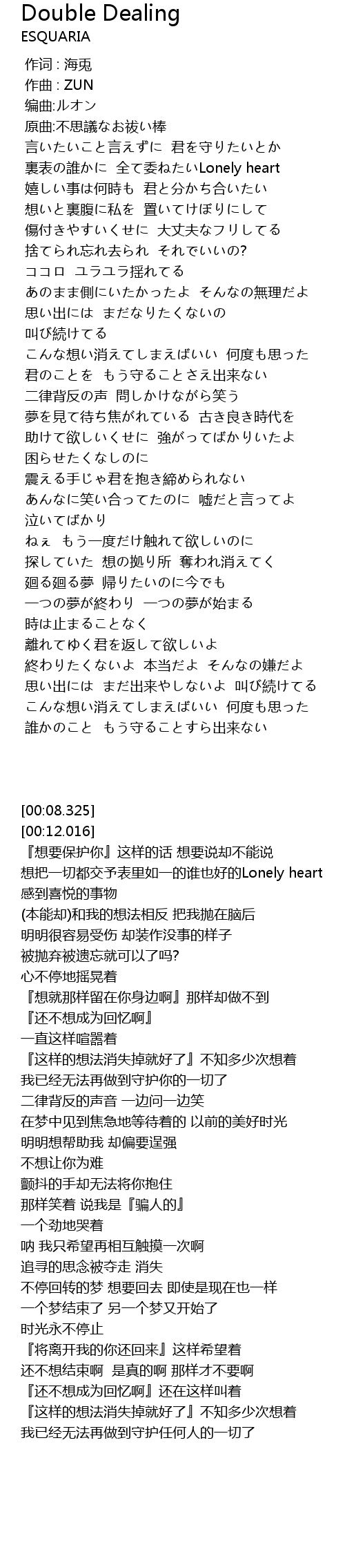 | [02:04.571] | 助けて欲しいくせに 強がってばかりいたよ |