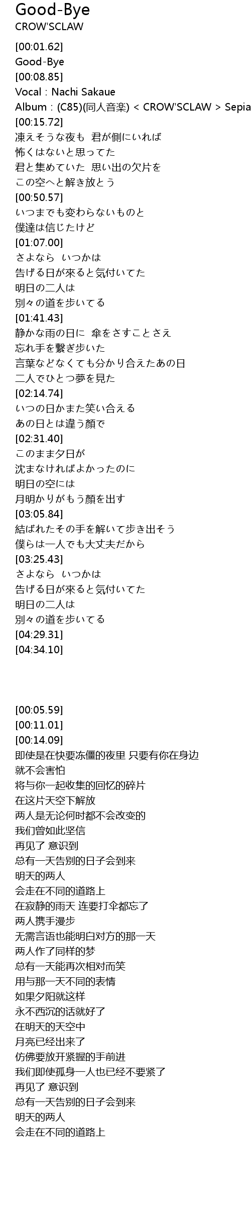 | [00:05.59] | GoodBye |