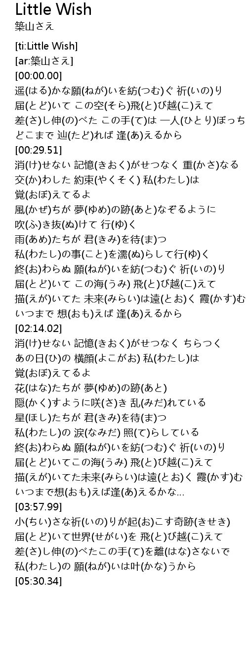 | [05:03.04] | 小(ちい)さな祈(いの)りが起(お)こす奇跡(きせき) |