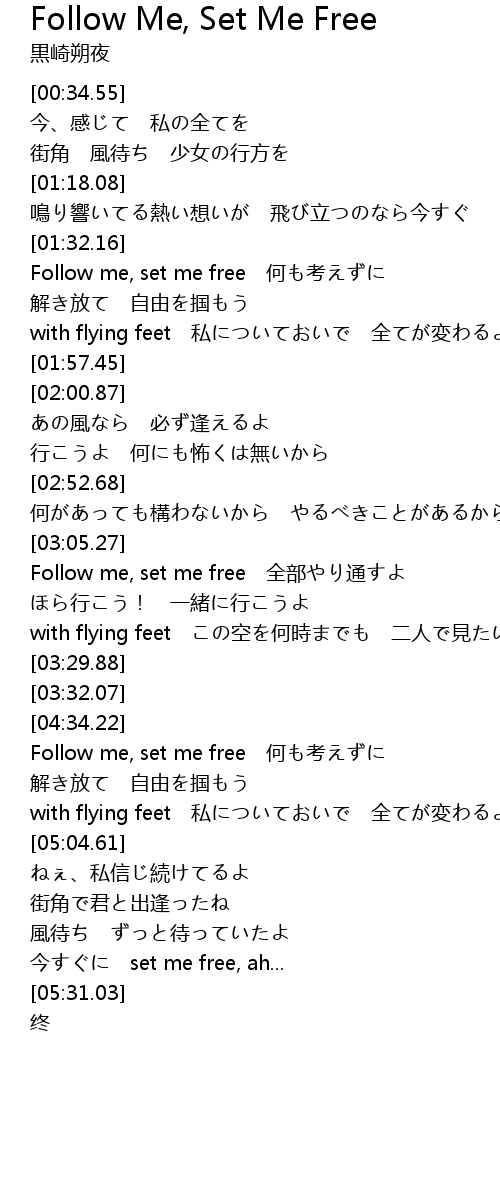 | [01:33.47] | Follow me, set me free 何も考えずに |