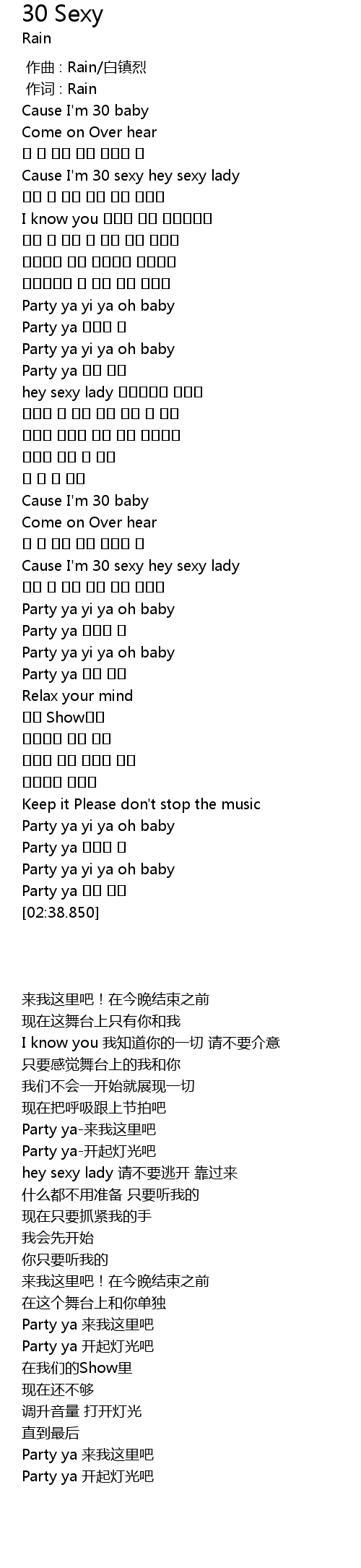 | [01:36.710] | Cause I' m 30 sexy hey sexy lady |