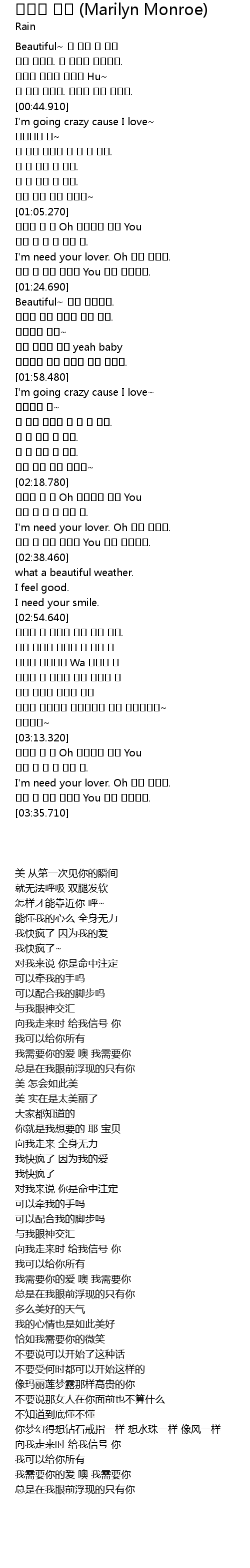 | [03:01.070] | 마릴린 먼로처럼 Wa 고귀한 널 |