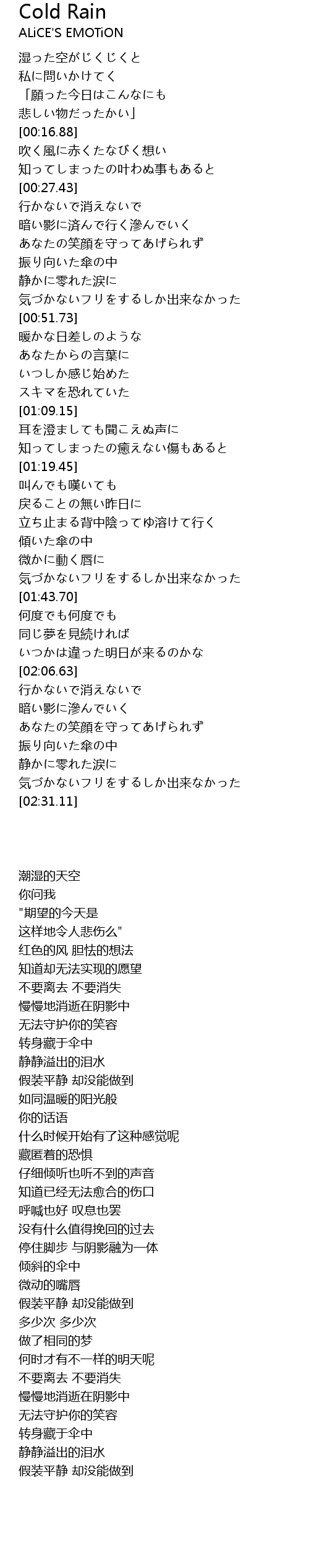 | [02:23.46] | 気づかないフリをするしか出来なかった |