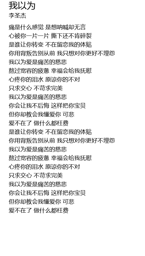 | [02:52.299] | wǒ yǐ wéi ài shì tòng kǔ de cí bēi |