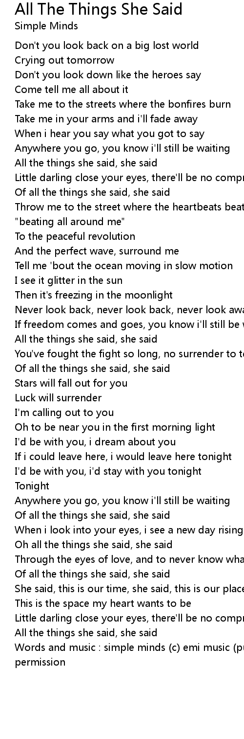 Words and music : simple minds (c) emi music (publ) ltd reproduced without permission |