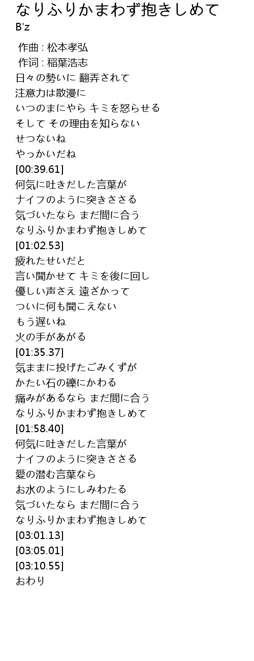 | [00:55.82] | なりふりかまわず抱きしめて |