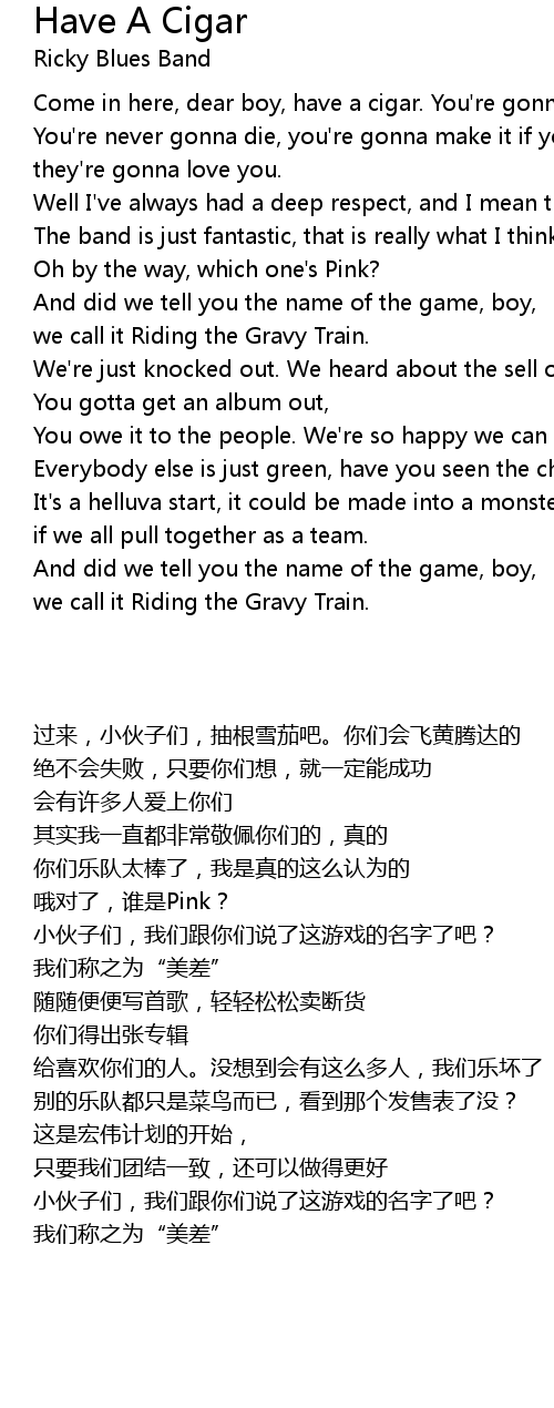 Come in here, dear boy, have a cigar. You're gonna go far, fly high, |