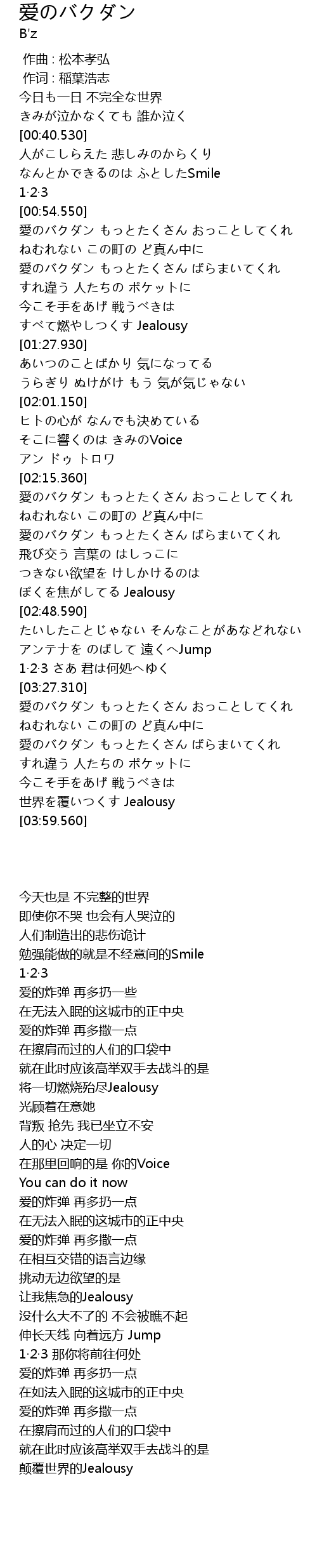 | [00:01.00] | 作词 : 稲葉浩志 |