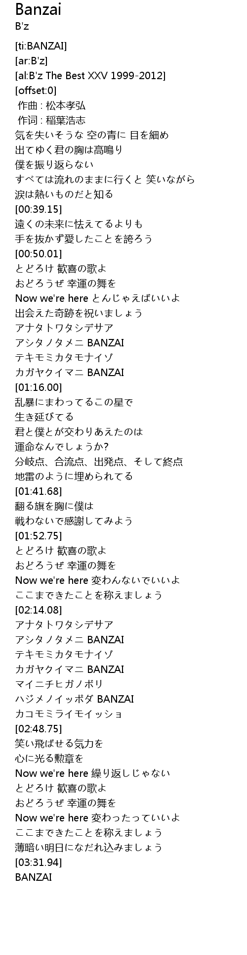 | [00:01.00] | 作词 : 稲葉浩志 |
