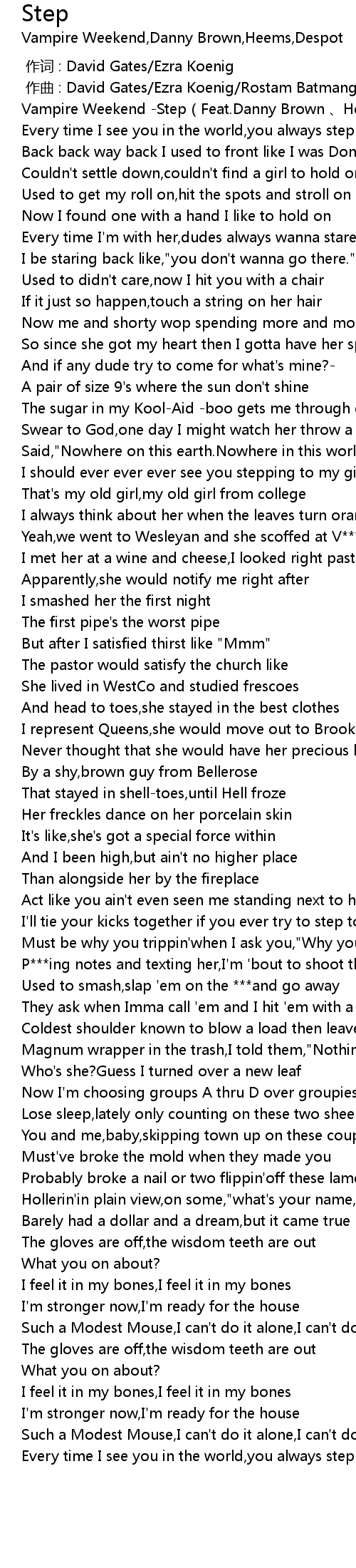 | [00:01.215] | Vampire Weekend -Step(Feat.Danny Brown 、Heems 、Despot) |
