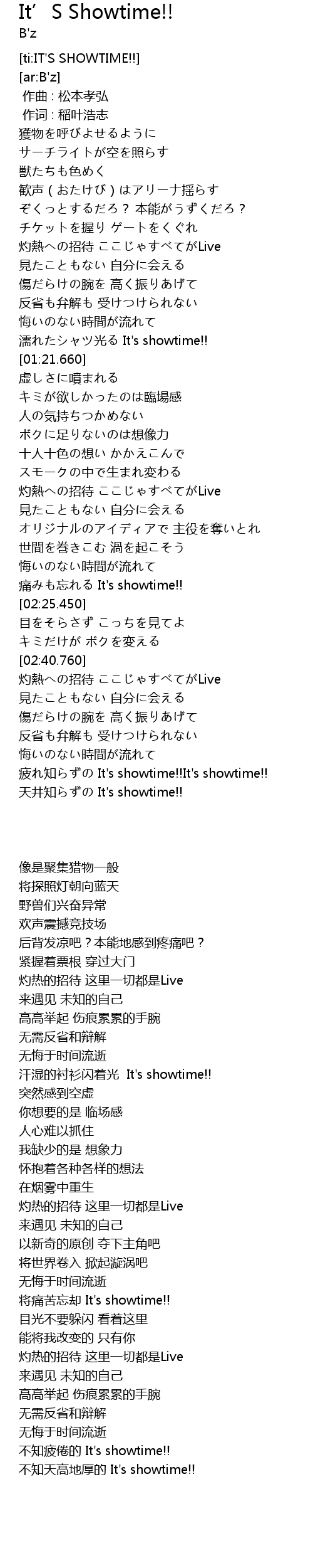 | [03:32.890] | pí zhī It' s showtime!! It' s showtime!! |