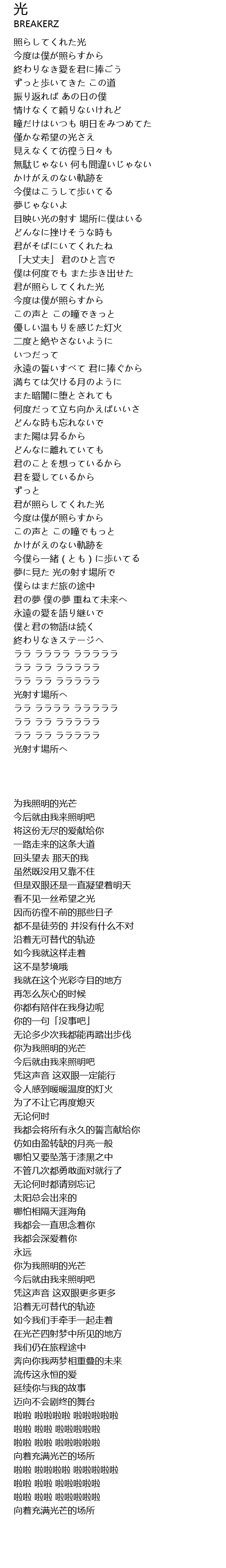 | [00:06.340] | 照らしてくれた光 |