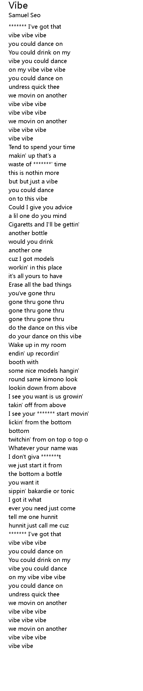 on my vibe vibe vibe |