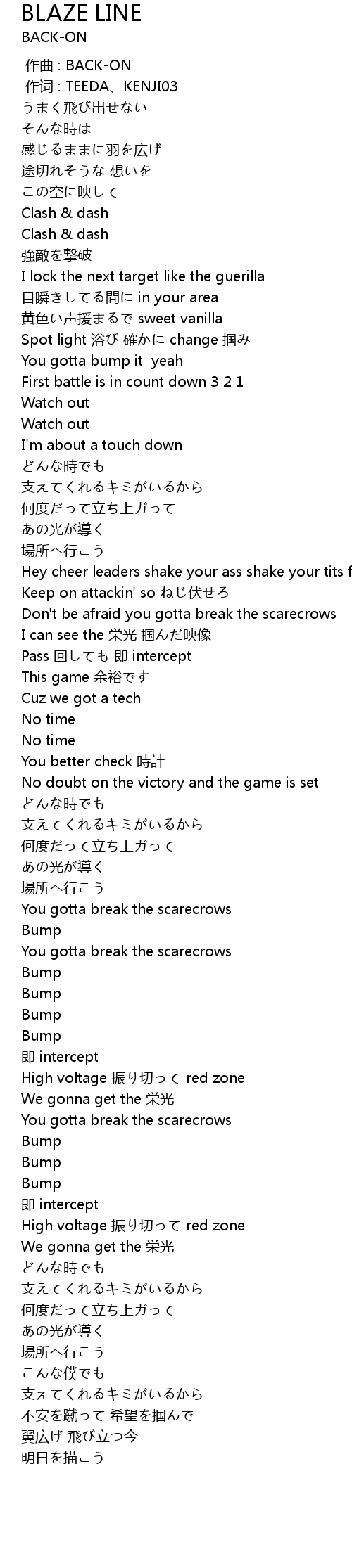 | [02:51.48] | High voltage 振り切って red zone |