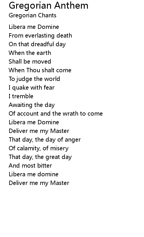 | Song | Gregorian Anthem |