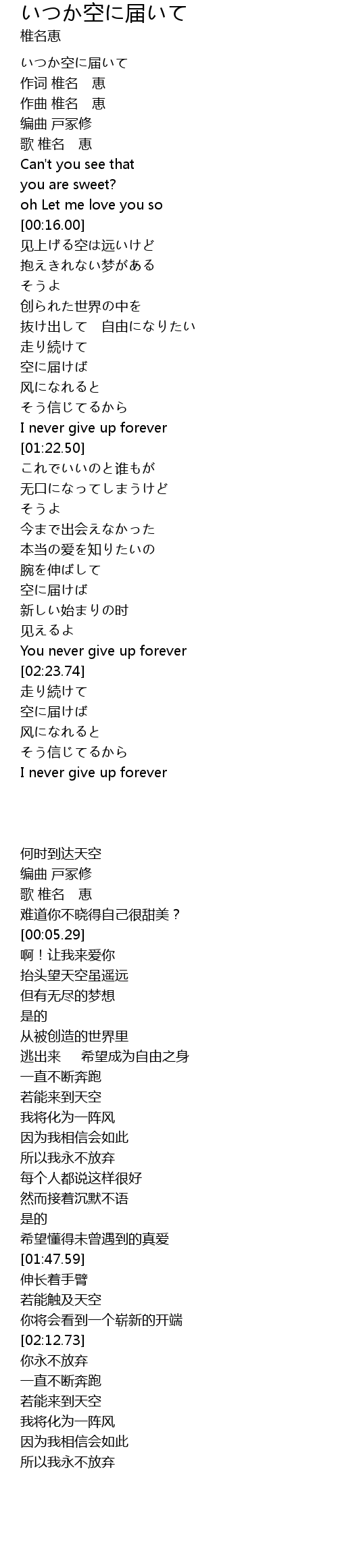| [01:17.21] | I never give up forever |