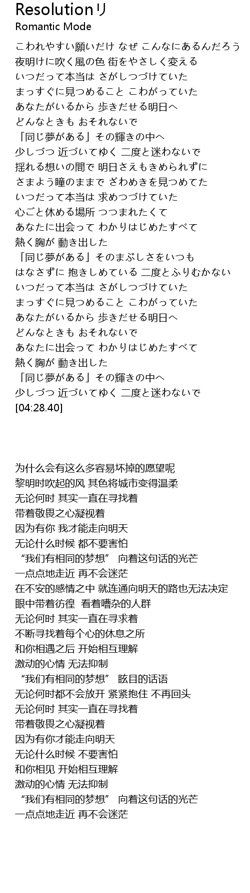 | [04:16.40] | 少しづつ 近づいてゆく 二度と迷わないで |