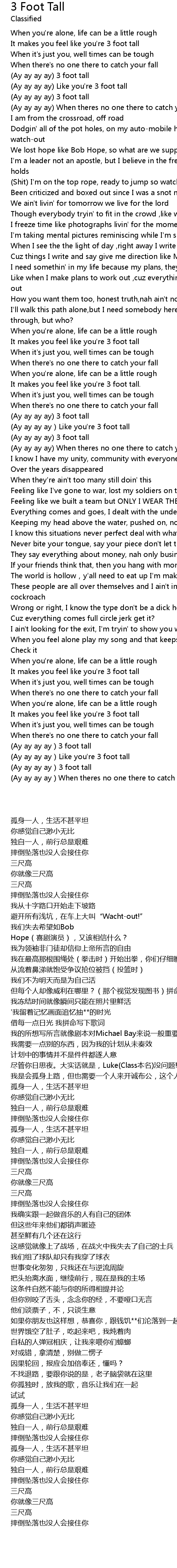 | [03:13.100] | (Ay ay ay ay)Like you're 3 foot tall |