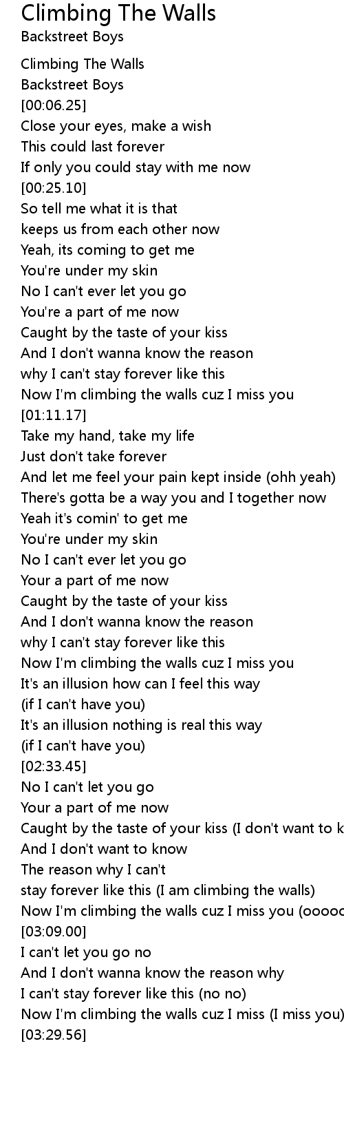 Now I'm climbing the walls cuz I miss you (oooooooohhhhhhh) |