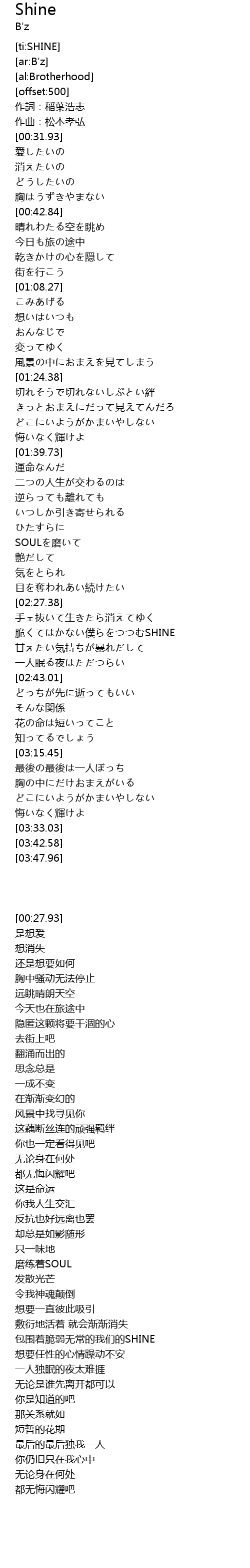 | [02:31.92] | 脆くてはかない僕らをつつむSHINE |