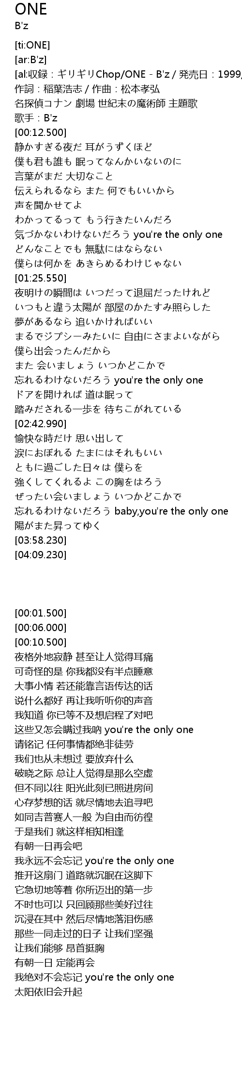 | [00:01.500] | 作詞:稲葉浩志/作曲:松本孝弘 |